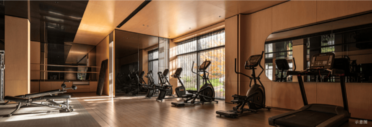 约1400㎡运动会所:设置四季恒温泳池,24小时水循环过滤,颂钵瑜伽空间、高端健身器械等,满足精英阶层对自我管理与生活质感的需求,将生命力体验延伸至各个场景。