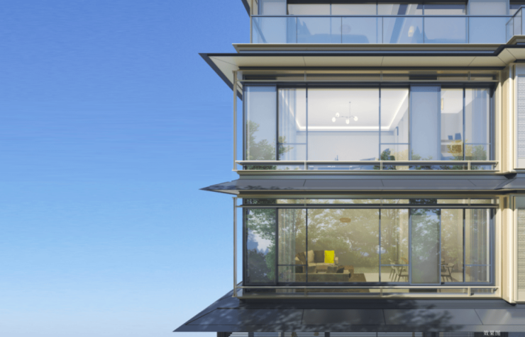 汲取宋式坡顶与挑檐,遵循现代高端镜面立面趋势,项目臻选高级铝板、石材勾勒建筑轮廓,搭配三玻两腔降噪隔音玻璃,勾勒光影交错、高大恢弘之姿。超高窗墙比让室内与自然无界沟通。美学、通风、景观、通透性尽显。