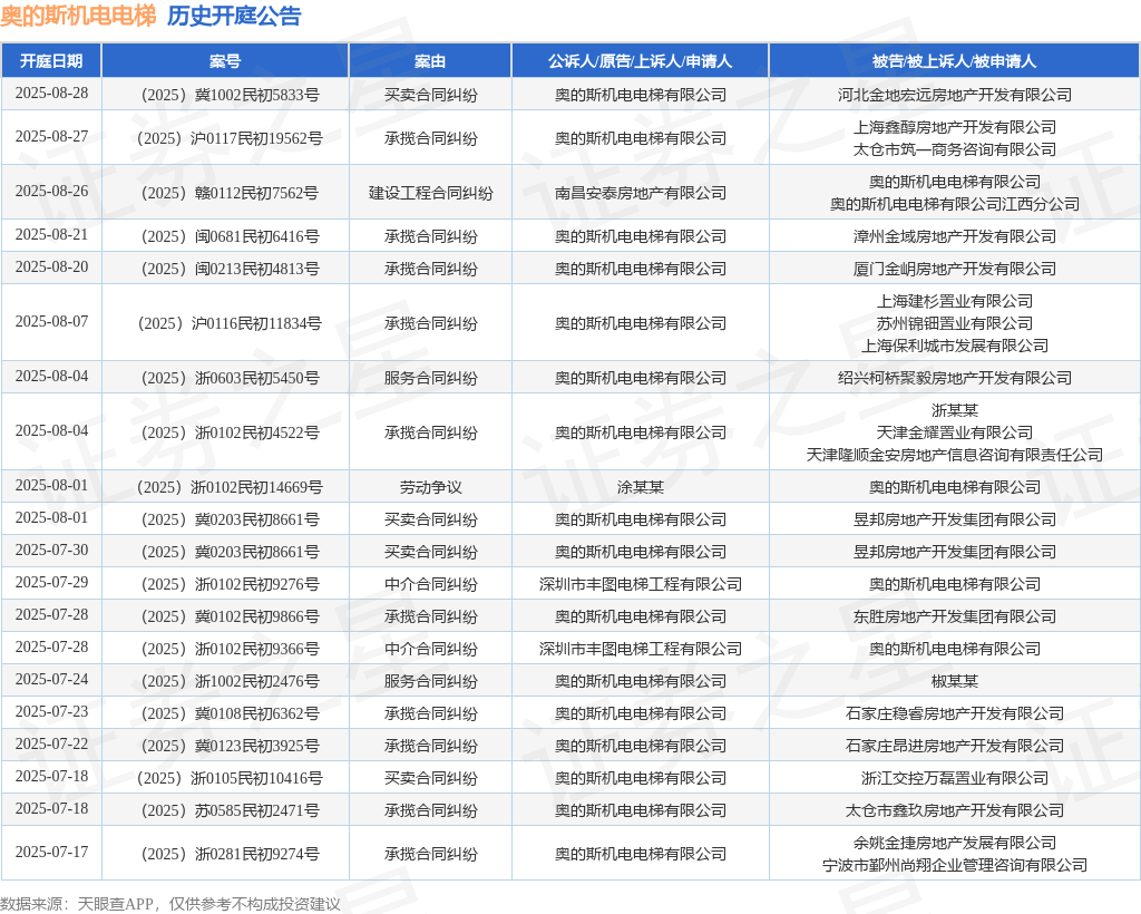 凯发k8官网登陆:奥的斯机电电梯作为被告被上诉人的1起触及劳作争议的诉讼将于2025年8月1日开庭