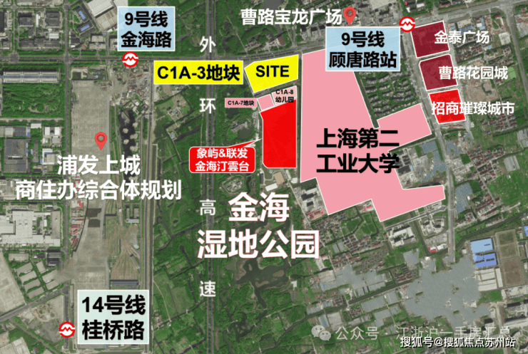 联发曹路项目南侧是象屿联发・金海汀云台,房地联动价6.3万元/㎡,次次触发积分,五开五罄,去化速度快.两宗地块容积率、限高一致,且均在金海湿地公园东侧.