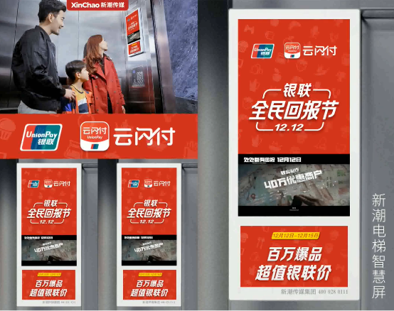 优异的内容,常常能变“传达”为“播传”,招引客户自动共享。因而,在广告投进时,如果能供给让人有传达欲的内容,则会让广告作用倍增。比方我国银联在新潮电梯电视上投进的“12.12全民报答节”广告,用电影的方式,杰出本次活动优惠力度大。
