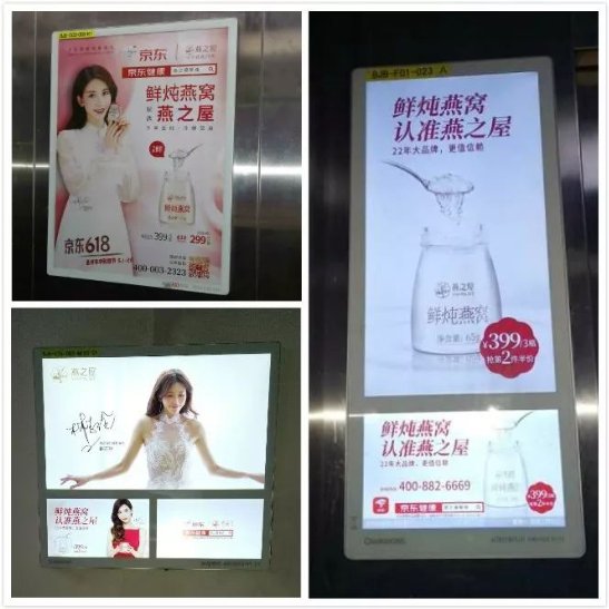 不同的电梯媒体方式,广告作用不同。电梯结构广告能够继续展现,电梯视频广告则视听结合、广告生动形象入神。组合投进能优势互补,取得更佳的广告宣扬作用。一起,立体化掩盖,能快速打破受众认知障碍,进步品牌知名度。在本年618时,燕之屋就以新潮梯内才智屏+梯外才智屏+电梯结构的梯媒矩阵,完成高频次、立体化影响,敏捷加深品牌认知。
